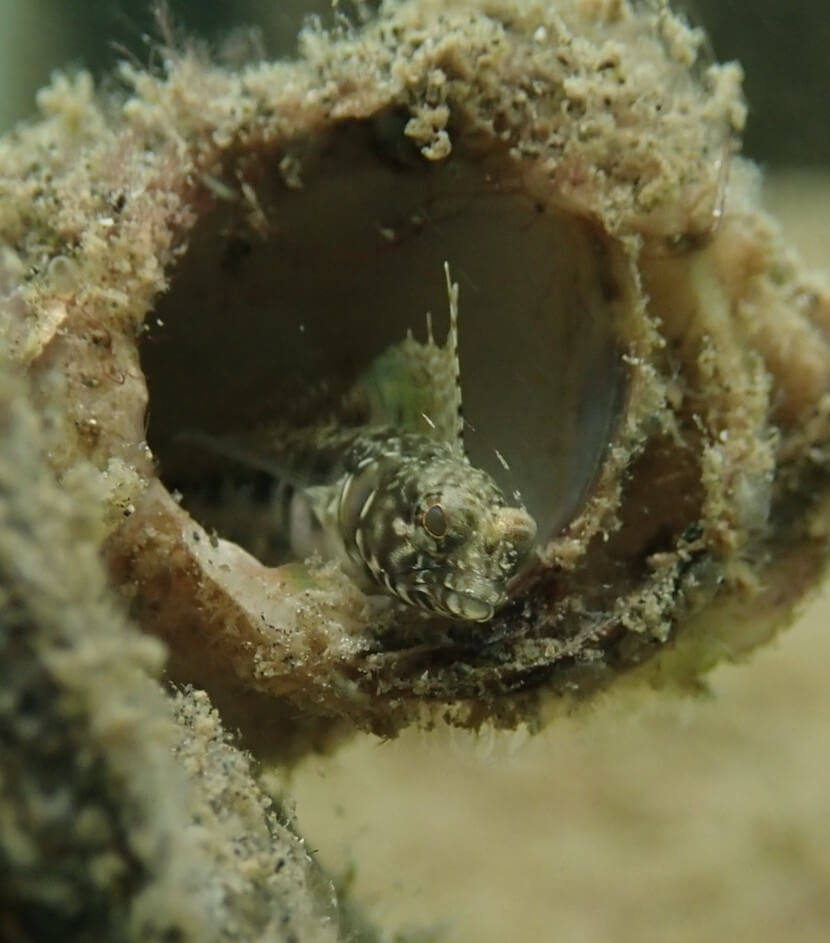 Found in empty holes on sandy bottoms with rubble.